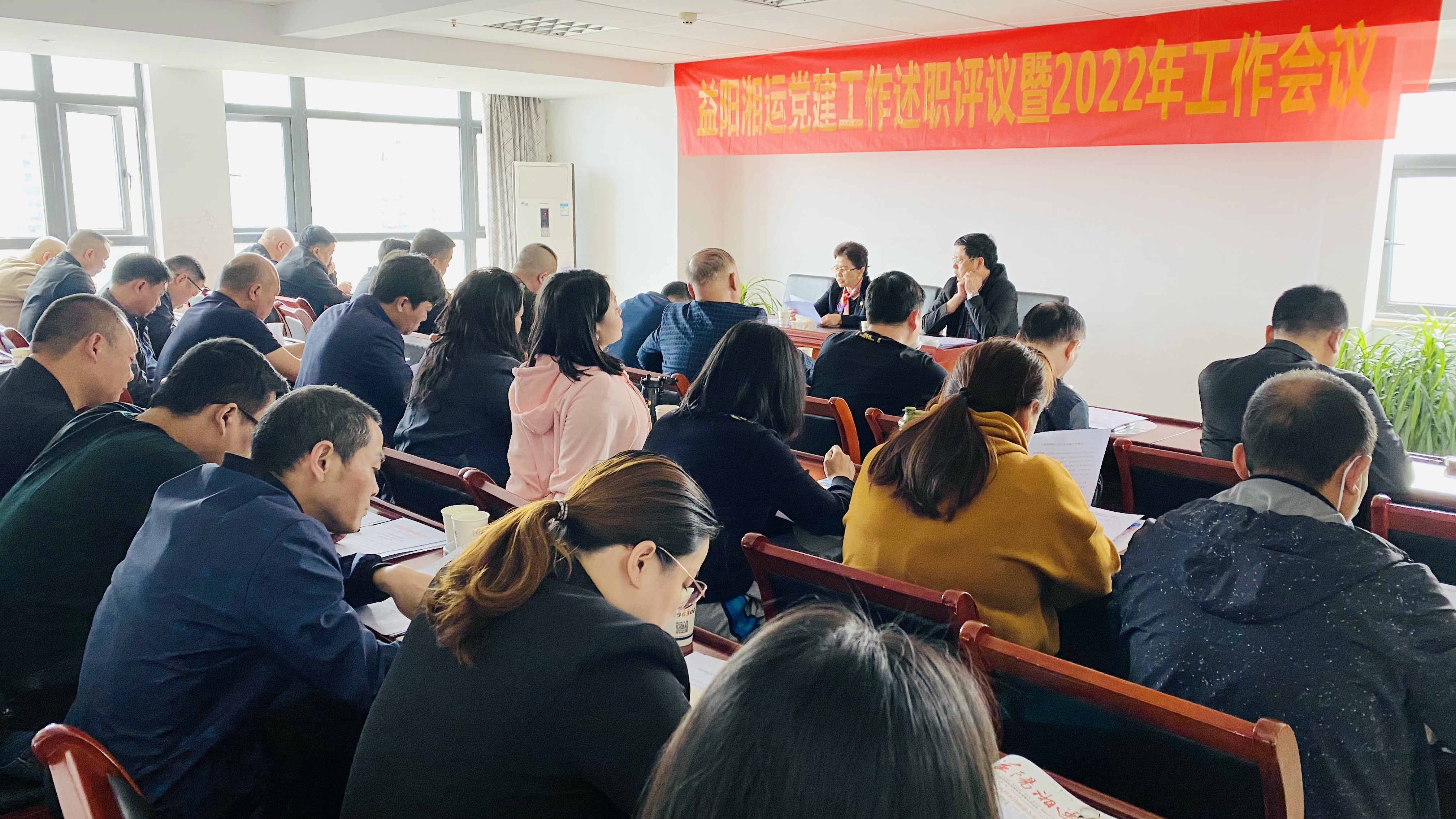 5月18日,益陽湘運黨建工作述職評議暨2022年工作會議在湘運大廈29樓會議室召開。公司黨委委員、黨支部書記和支部干事、市非公綜合黨委專職黨建工作指導員李虎王等40人參加會議。公司黨委委員、工會主席王錫龍主持會議。