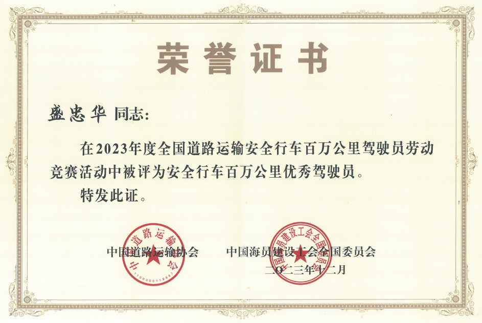 1月10日獲悉,南縣客運分公司駕駛員盛忠華榮獲“全國道路運輸安全行車百萬公里優秀駕駛員”稱號。