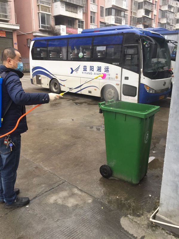 2月1日,公司所屬各車站盡管沒有恢復開班,但是留守值班人員堅持按照當地疫情防控部門的工作要求,認真落實公共區域、家屬區等場地的消毒和清潔。圖1為安化運輸分公司副經理夏遠囑給站場消毒,圖2為梅城客運分公司經理李義仁給辦公區消毒。